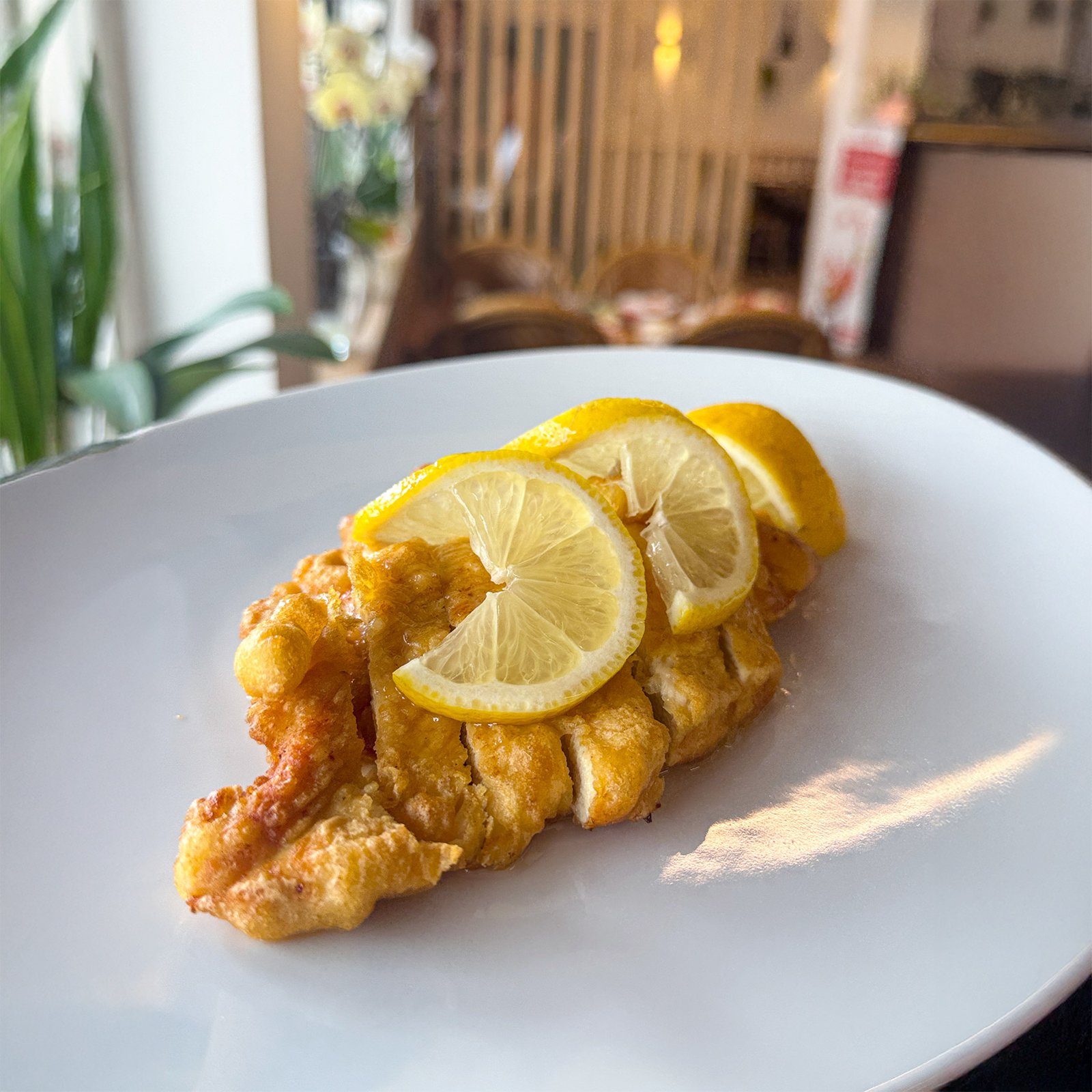POLLO REBOZADO CON SALSA DE LIMON